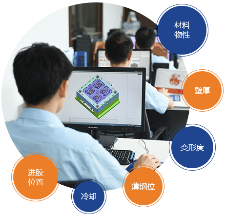 分析通過對材料物性,產品的可行性分析,如壁厚、變形度、進膠位置等,提前預判斷潛在問題